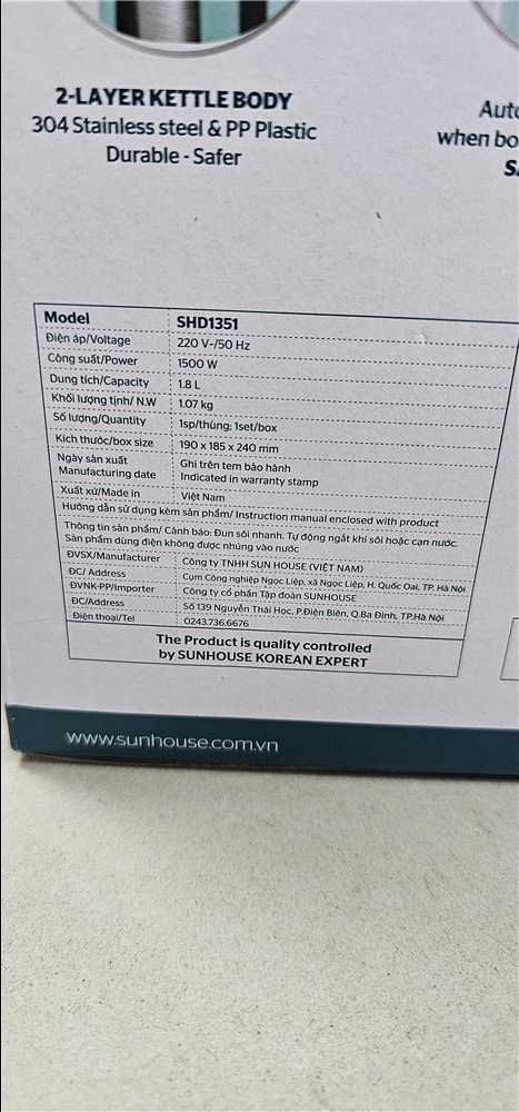 Đánh giá bình đun siêu tốc Sunhouse 1,8 lít SHD1351