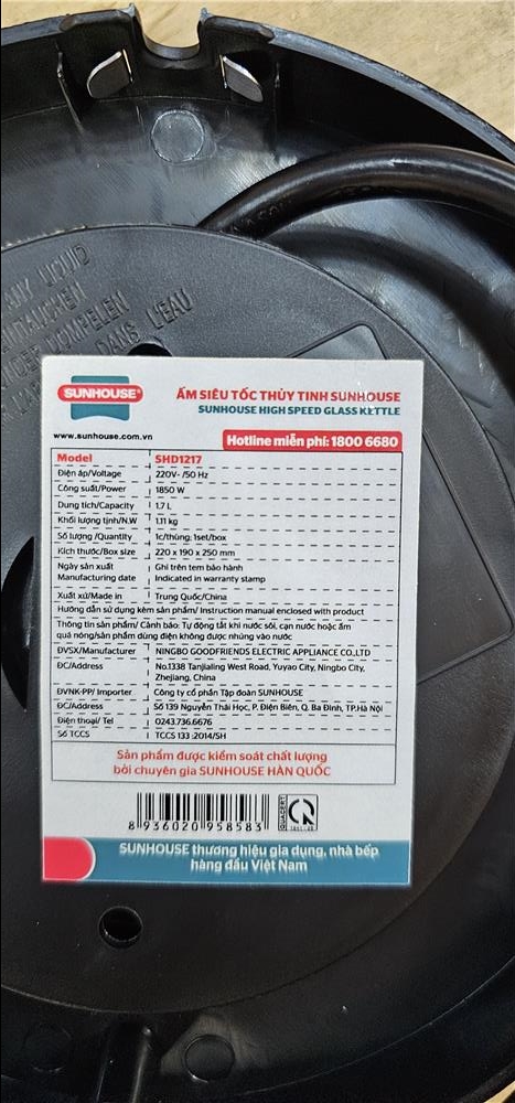 Đánh giá Ấm siêu tốc thủy tinh Sunhouse SHD-1217 1,7 lít