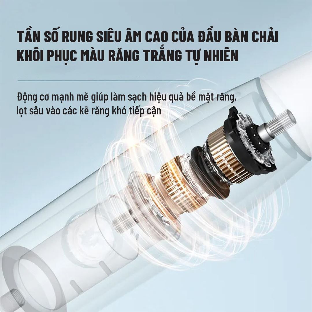 Điểm nổi bật của Hyundai OC-013 nằm ở động cơ công suất cao với tần số rung lên đến 38.000 lần/phút, giúp loại bỏ mảng bám và vi khuẩn hiệu quả gấp nhiều lần so với bàn chải truyền thống. Các sóng âm len lỏi sâu vào từng kẽ răng, mang lại cảm giác sạch sẽ toàn diện và hơi thở thơm mát sau mỗi lần sử dụng.