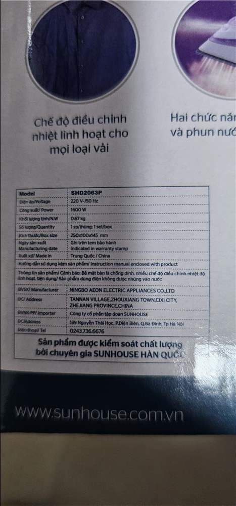 Đánh giá Bàn là hơi nước Sunhouse SHD2063P