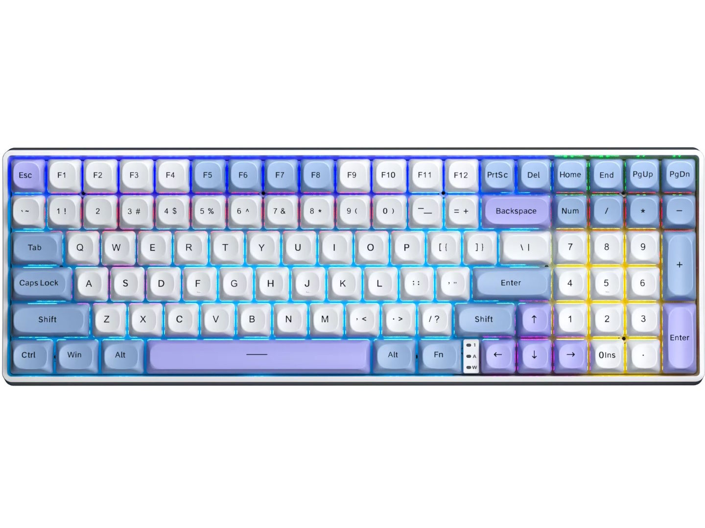 AULA S100 Pro gây ấn tượng với thiết kế tối giản nhưng không kém phần cá tính nhờ sự phối hợp các gam màu thời thượng, tạo cảm giác trẻ trung và hài hòa cho mọi không gian setup. Dù có kích thước gọn gàng, bàn phím vẫn được trang bị đầy đủ dãy phím số, giúp người dùng nhập liệu, xử lý văn bản hay làm việc kế toán thuận tiện hơn. Với layout 99 phím, sản phẩm vừa tiết kiệm diện tích bàn làm việc, vừa giữ được sự quen thuộc trong quá trình sử dụng hằng ngày.