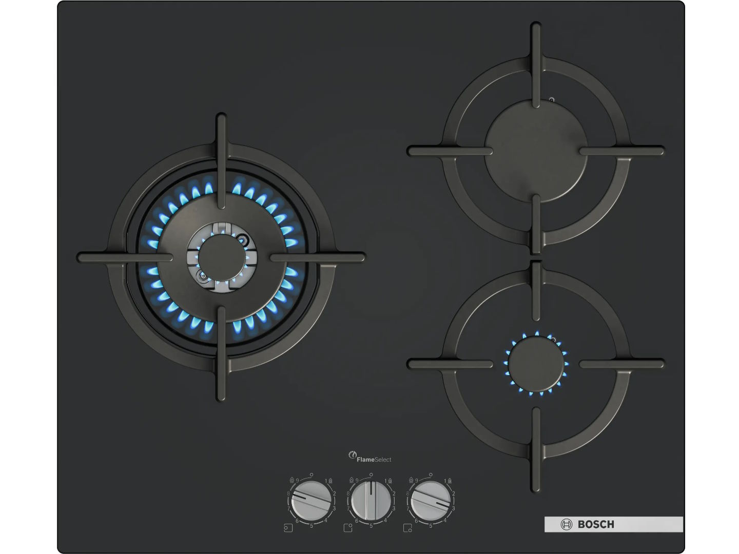 Bosch PPC6A6I10 Series 6 được trang bị 3 đầu đốt với công suất khác nhau, đáp ứng linh hoạt nhiều nhu cầu chế biến.