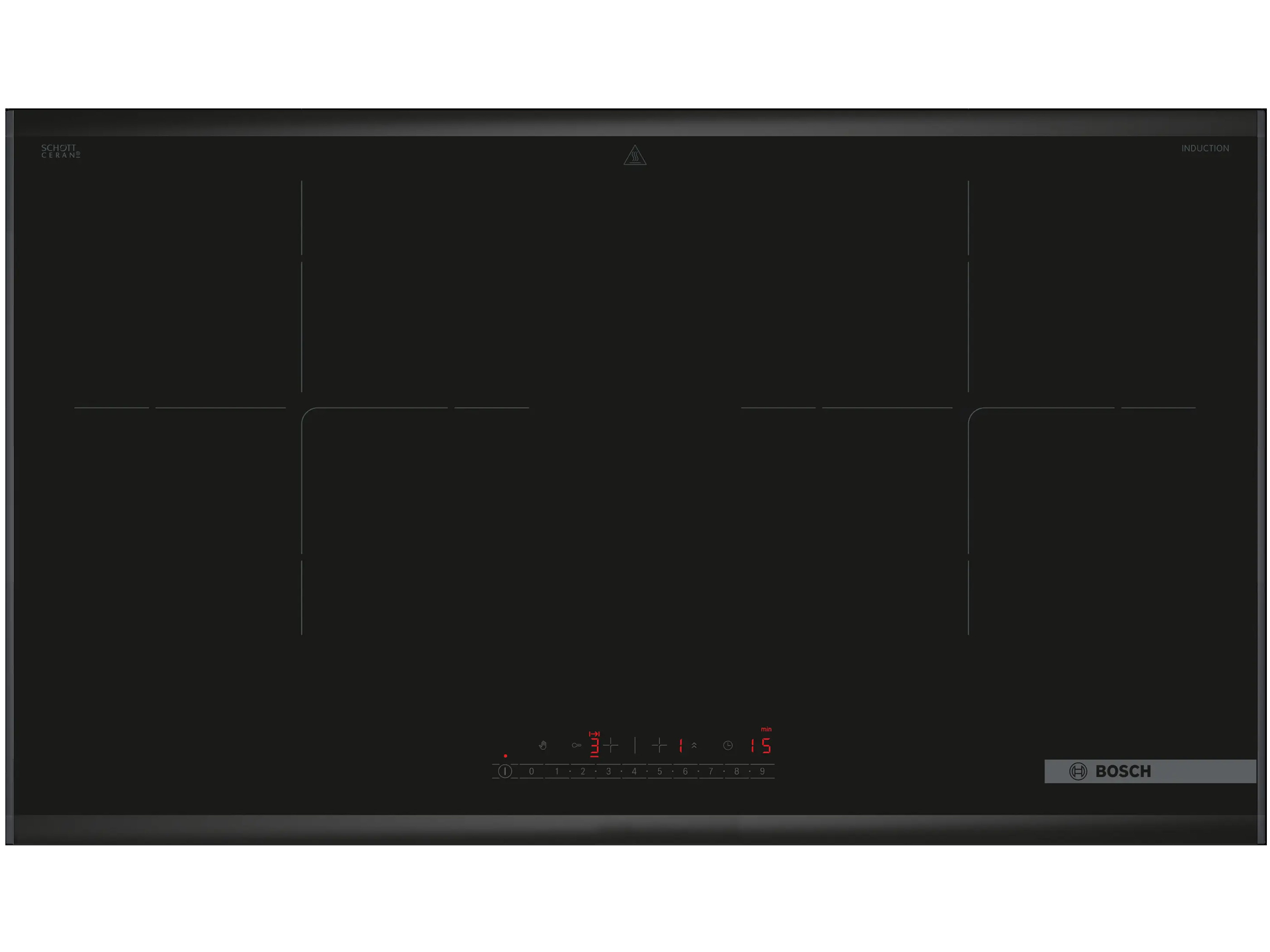 Bosch PPI82569VN được trang bị bảng điều khiển cảm ứng trượt DirectSelect hiện đại. Người dùng chỉ cần chạm hoặc trượt nhẹ để chọn mức công suất mong muốn, thay vì phải bấm tăng/giảm nhiều lần như bếp thông thường.
