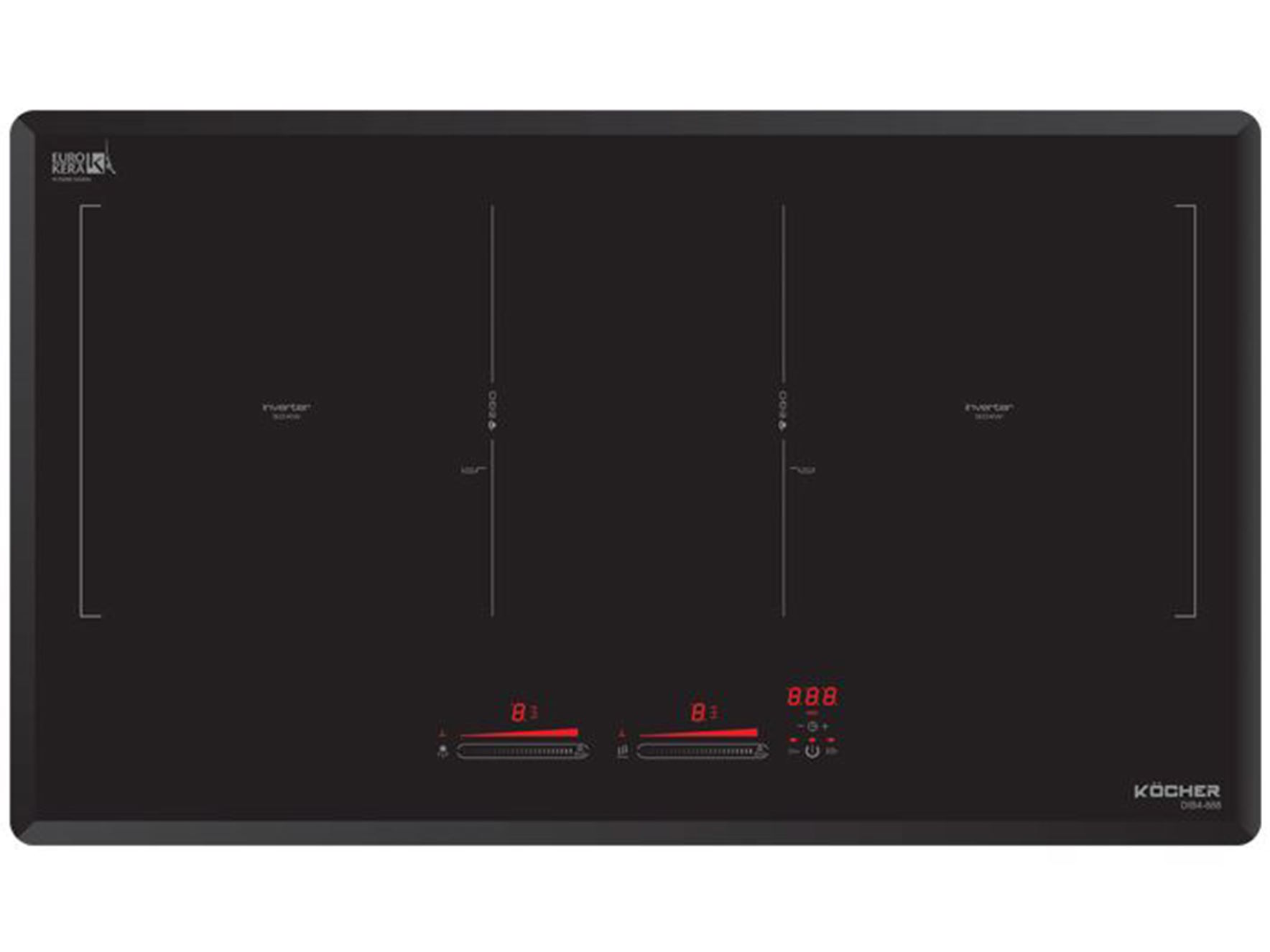 Bếp từ Kocher DIB4-888 nổi bật với 4 cạnh vát tinh tế, màu đen lịch lãm, dễ dàng lắp âm, mang đến vẻ đẹp phẳng, liền mạch cho mọi không gian bếp. Mặt kính Eurokera Kera Black cao cấp của Pháp không chỉ chịu nhiệt, chịu lực tốt mà còn chống trầy xước, chống bám bẩn và dễ lau chùi. Họa tiết in sắc nét cùng viền bếp được hoàn thiện tỉ mỉ tạo nên tổng thể vừa sang trọng vừa bền bỉ theo thời gian.