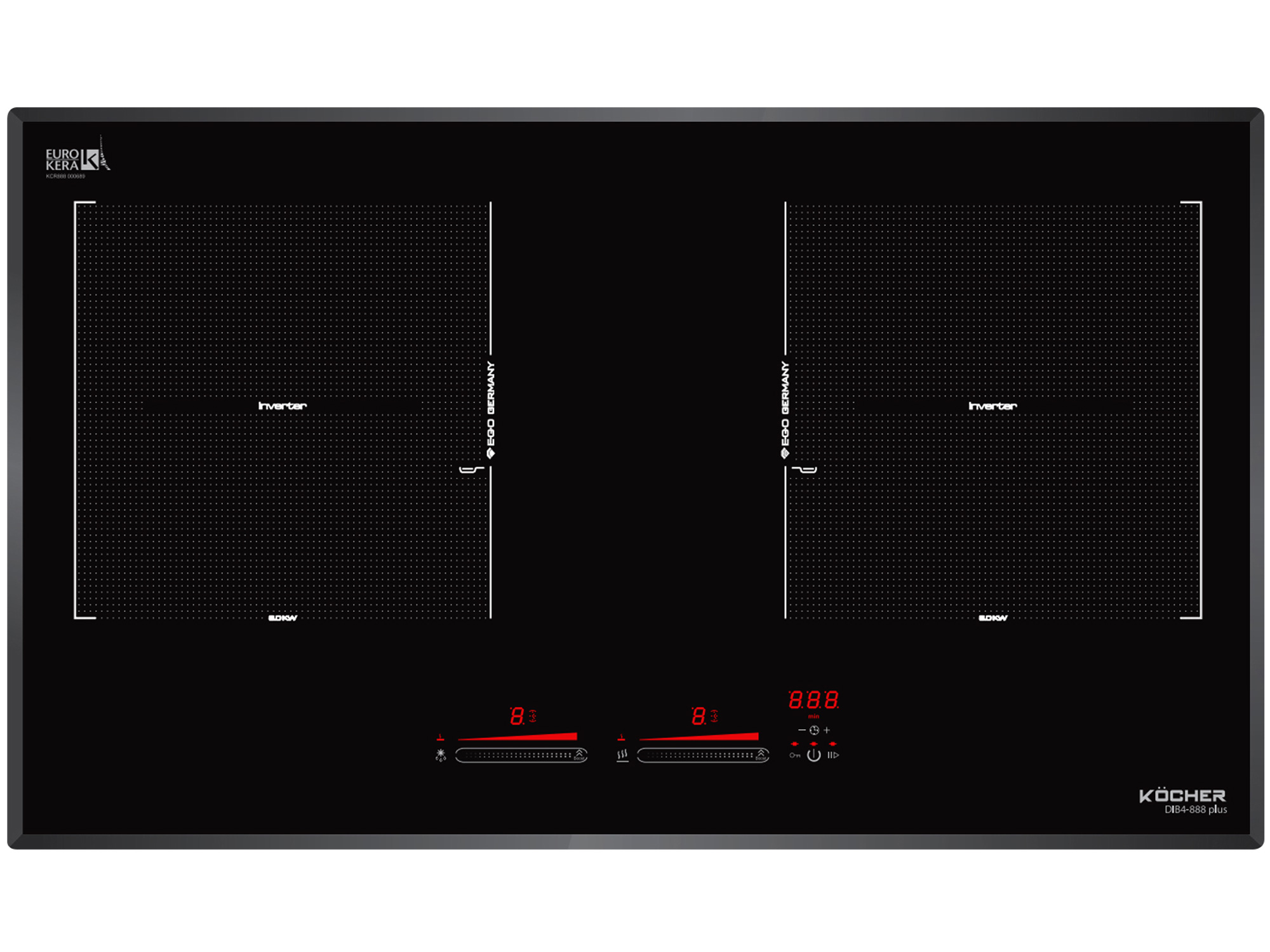 Bếp từ đôi Kocher DIB4-888 PLUS sở hữu thiết kế sang trọng, mặt kính Eurokera chịu nhiệt – chịu lực, tích hợp công nghệ Smart Inverter tiết kiệm 38% điện năng và nhiều tính năng nấu thông minh, mang đến trải nghiệm nấu ăn nhanh chóng, tiện lợi và an toàn cho mọi gia đình.