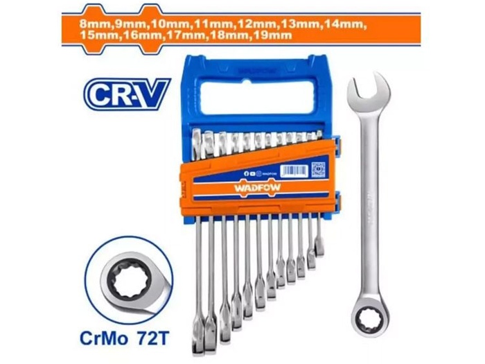 Bộ 12 cờ lê vòng miệng tự động Wadfow WSP4212 gồm 12 kích thước phổ biến từ 8mm đến 19mm, bao gồm 8, 9, 10, 11, 12, 13, 14, 15, 16, 17, 18 và 19mm.
