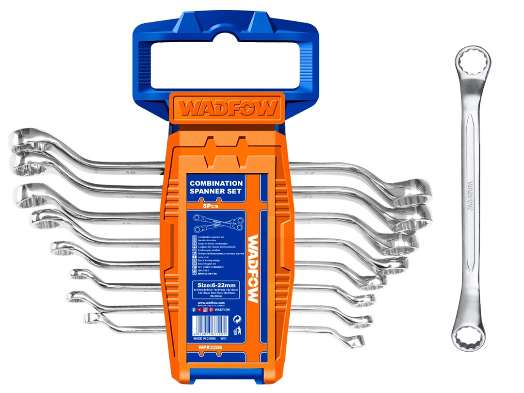 Wadfow WFR3208 có dải kích thước từ 6mm đến 22mm, giúp người dùng linh hoạt thực hiện nhiều công việc sửa chữa khác nhau. Bộ sản phẩm bao gồm các kích thước 6 x 7 mm, 8 x 9 mm, 10 x 11 mm, 12 x 13 mm, 14 x 15 mm, 16 x 17 mm, 18 x 19 mm và 20 x 22 mm, phù hợp với nhiều loại bu lông và đai ốc thường gặp trong quá trình sửa chữa và lắp ráp.