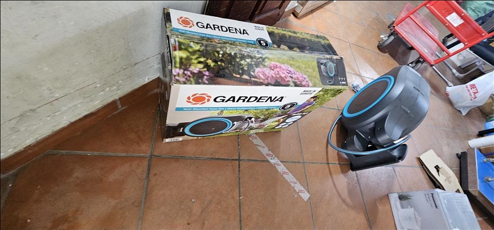Bộ dây tưới Gardena tự rút gọn gàng nên người dùng không phải quấn dây lại sau mỗi lần sử dụng.