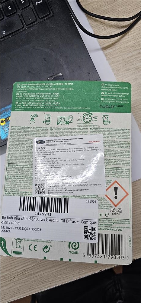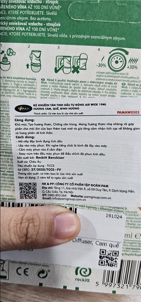 - Khi cắm lọ tinh dầu cắm điện Airwick phải cách xa tầm với của trẻ em.