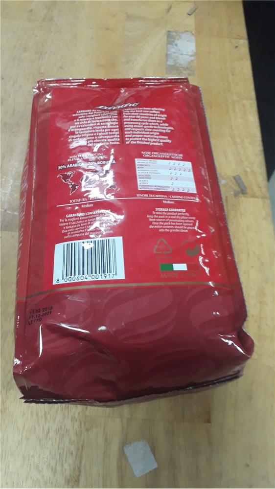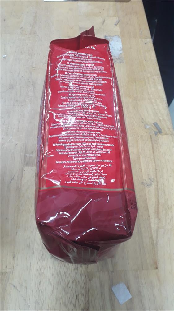 Hình ảnh đóng gói cà phê hạt Carraro Globo Rosso 1000g.