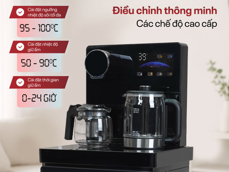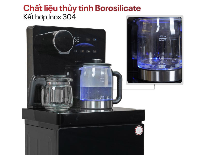 Không chỉ là một cây nước nóng lạnh thông thường, Fujihome TBA2 còn được trang bị bộ ấm thủy tinh cao cấp đi kèm. Bộ ấm có lưới lọc tiện dụng để pha trà, cà phê hoặc thảo mộc, giúp người dùng thưởng thức đồ uống một cách chuyên nghiệp. Ấm thủy tinh không chỉ giữ nhiệt tốt mà còn giữ trọn hương vị của đồ uống, đồng thời dễ dàng vệ sinh sau khi sử dụng.