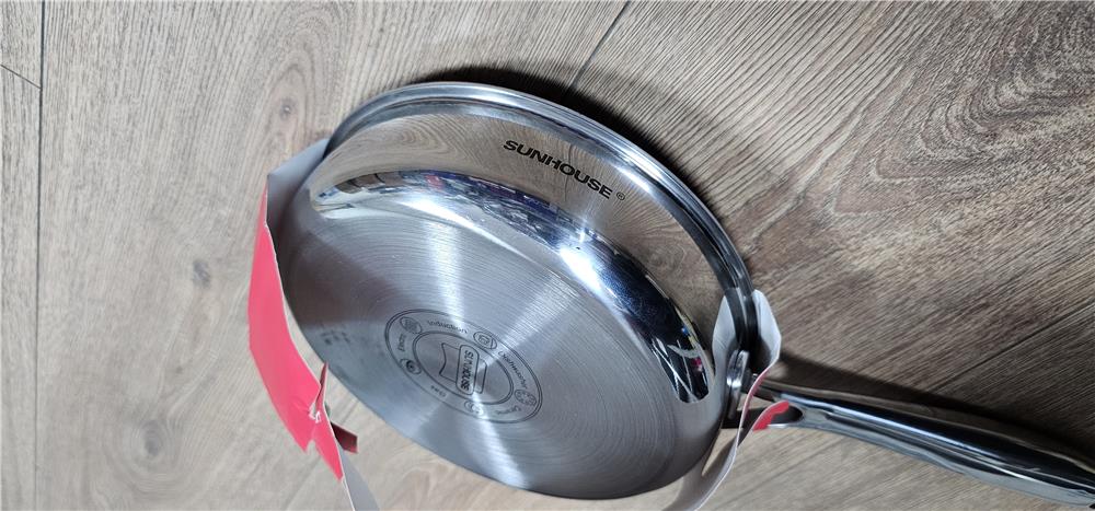Chảo inox Sunhouse có kết cấu 3 lớp nguyên khối siêu bền, chịu lực và nhiệt tốt, chống phồng đáy.