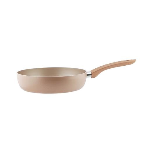 Bên ngoài phủ sơn chống dính bám bẩn màu Bzonce Gold nhẹ nhàng, đẹp mắt. Lòng chảo sâu 6.2cm giúp chiên rán không bị trào hay bắn dầu ra ngoài.