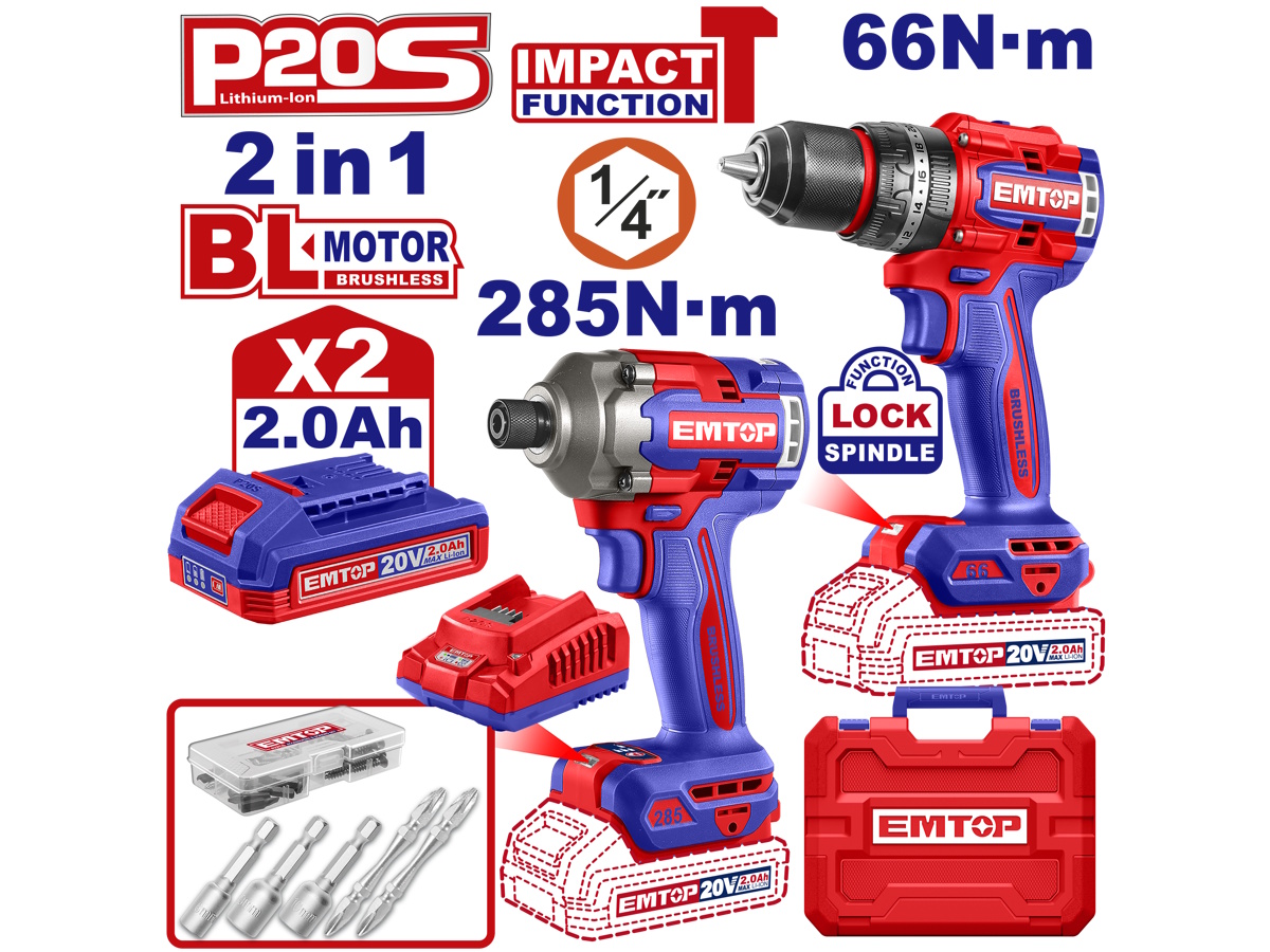 Combo máy khoan và máy bắn vít dùng pin 20V Emtop ECKL20277 là bộ công cụ mạnh mẽ dành cho thợ kỹ thuật, thợ cơ khí và người dùng gia đình cần thiết bị đa năng. Với động cơ không chổi than bền bỉ cùng pin 20V mạnh mẽ, sản phẩm mang lại hiệu suất làm việc ổn định và tiết kiệm năng lượng.