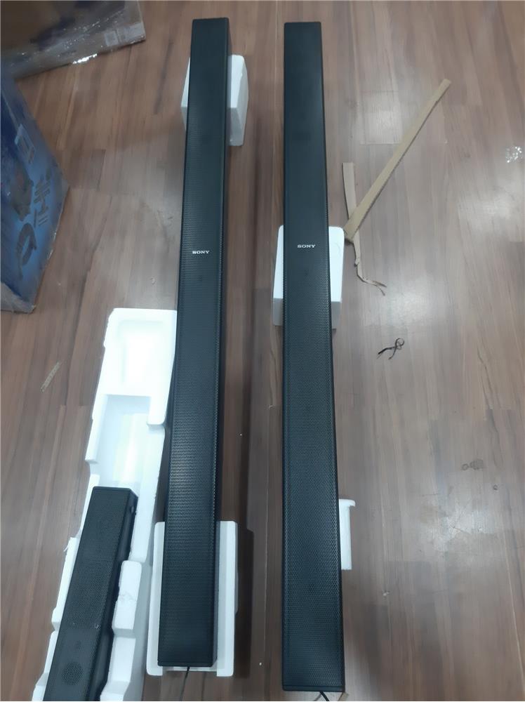 - 2 thanh loa đứng (trái, phải) có dạng hình chữ nhật đứng với chiều cao 120cm, kiểu dáng thanh mảnh. Hai loa này được đặt ở 2 bên, hướng vào phía tivi để mở rộng hướng âm, giúp âm thanh vòm trở nên chân thật, sống động hơn bao giờ hết. Bên dưới loa có chân tròn giúp bạn đặt, để dễ dàng. Tuy nhiên, để tiết kiệm không gian, bạn có thể sử dụng giá treo để lắp đặt 2 loa này. Mặt sau của loa có vị trí bắt ốc vít rất tiện lợi.
