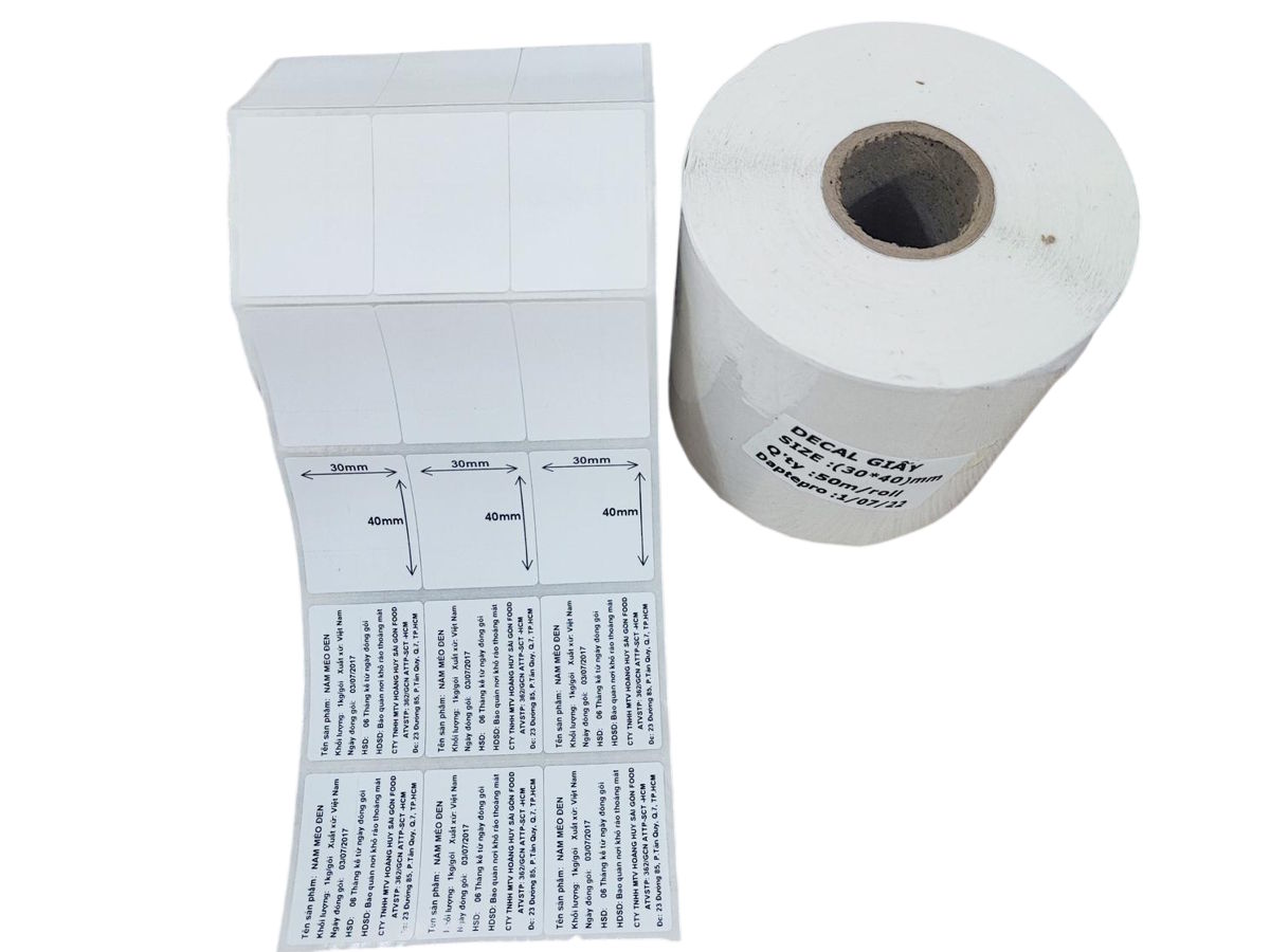 Decal giấy (30mm x 40mm) x 50m 3 tem là lựa chọn hoàn hảo cho các công ty, doanh nghiệp cần những tem nhãn chất lượng, đa dạng và dễ dàng tùy chỉnh theo yêu cầu.