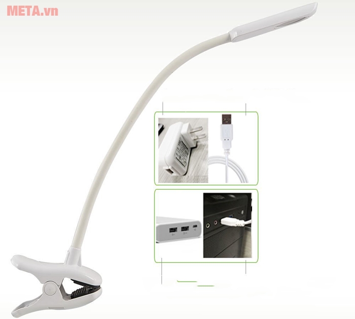 Thân đèn dài 56cm, có thể vươn xa hay gập xuống nhờ sự bẻ bong linh hoạt, cho người dùng nhiều sự lựa chọn hơn với các tư thế khác nhau. Đèn Led có dây sạc USB và củ sạc vào nguồn điện, cho bạn tùy chọn lấy năng lượng ở máy tính hay ổ điện.