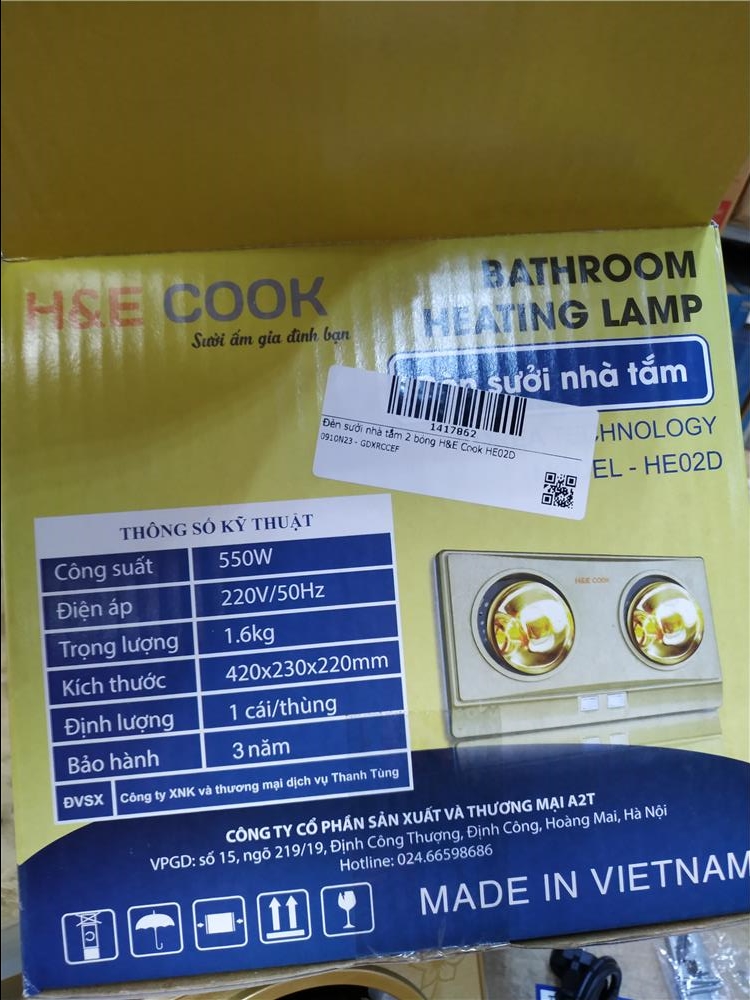 Đánh giá Đèn sưởi nhà tắm 2 bóng H&E Cook HE02D