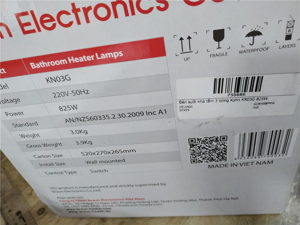 Đánh giá Đèn sưởi nhà tắm 3 bóng Kohn KN03G 825W