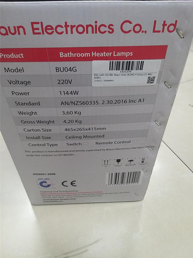 Đánh giá Đèn sưởi nhà tắm Braun Kohn BU04G 4 bóng (Có điều khiển)