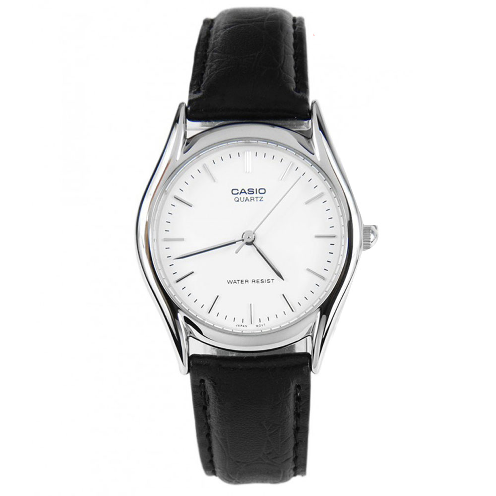 Đồng hồ nam Casio MTP-1094E-7A dây da màu đen có những đường vân nổi, tăng điểm nhấn cho chiếc đồng hồ đơn giản này.