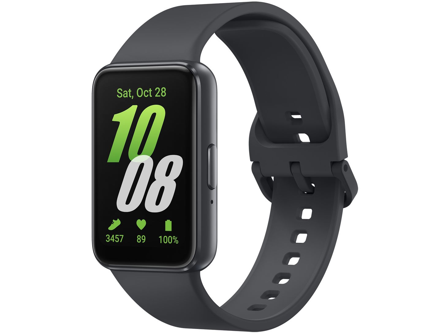 Galaxy Fit3 sở hữu màn hình AMOLED 1.6 inch, độ phân giải 256 x 402 pixels, giúp hiển thị hình ảnh sống động, màu sắc rực rỡ và dễ đọc dưới ánh sáng mạnh. Thiết kế này mang đến không gian thao tác thoải mái, giúp người dùng dễ dàng sử dụng mọi tính năng ngay trên cổ tay.