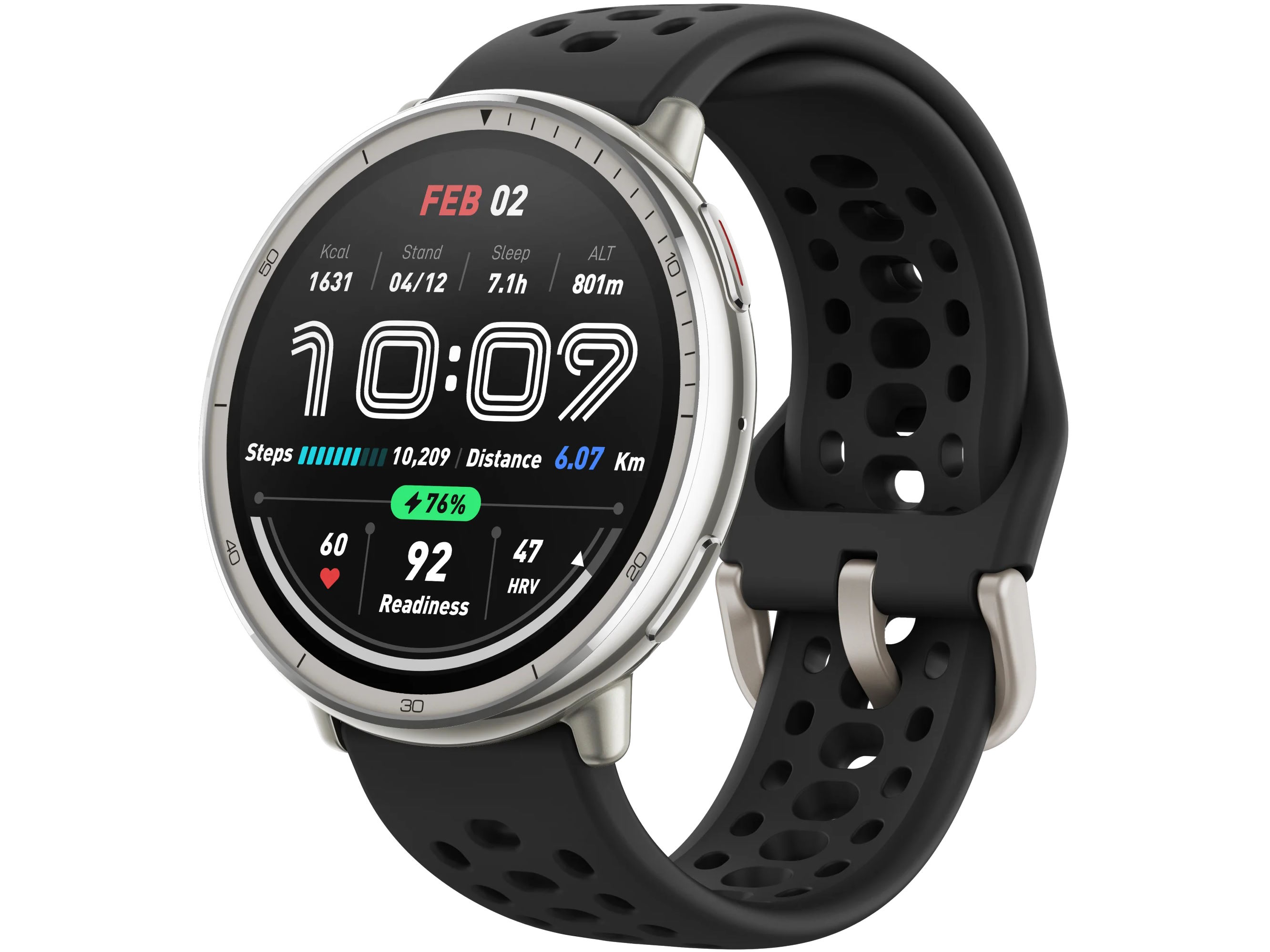Đồng hồ được trang bị cảm biến sinh trắc học BioTracker 6.0 PPG, cho khả năng theo dõi nhịp tim, SpO2, mức độ căng thẳng, nhịp thở và giấc ngủ liên tục 24/7 với độ chính xác cao.