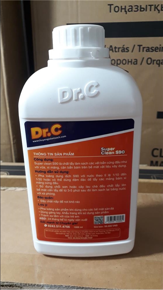 Thông tin về dung dịch làm sạch vết bẩn cứng đầu, tẩy xi măng, vôi vữa trên bề mặt sàn gạch, đồ sứ Dr.C S90 1 lít