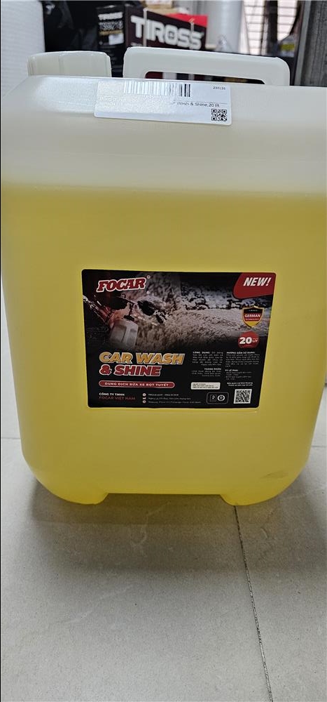Quy cách đóng gói của dung dịch rửa bóng xe Focar Car Wash & Shine can 20 lít