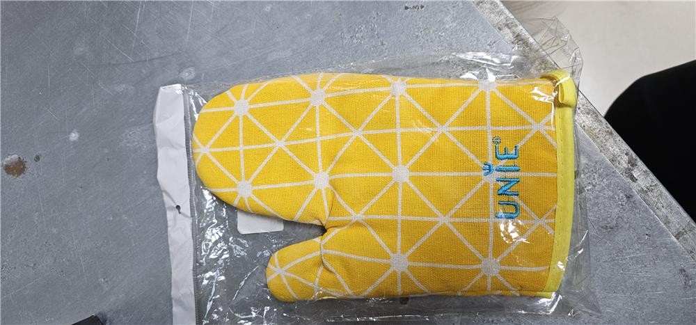 Trên găng tay có logo Unie. Găng tay làm từ chất liệu vải dày dặn, chịu nhiệt tốt. Ngoài ra găng tay cũng có thể sử dụng để bắc nồi, bắc bếp trong nấu ăn gia đình.