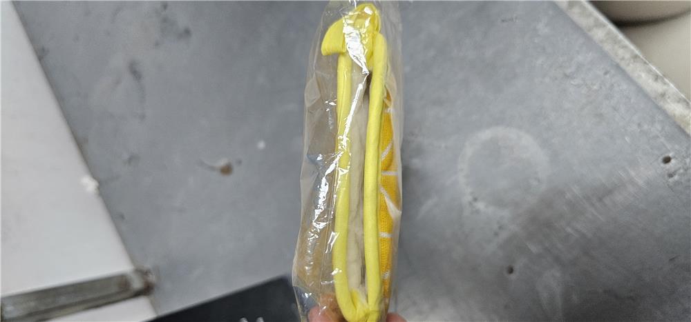 Găng tay lấy thức ăn là dụng cụ không thể thiếu trong nhà bếp của bạn. Găng tay lấy thức ăn thiết kế màu vàng kết hợp với sọc kẻ màu trắng rất đẹp mắt.