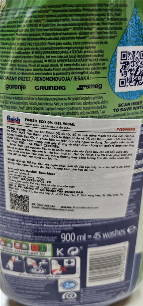 Đánh giá Gel rửa bát Finish Eco 0% 900ml