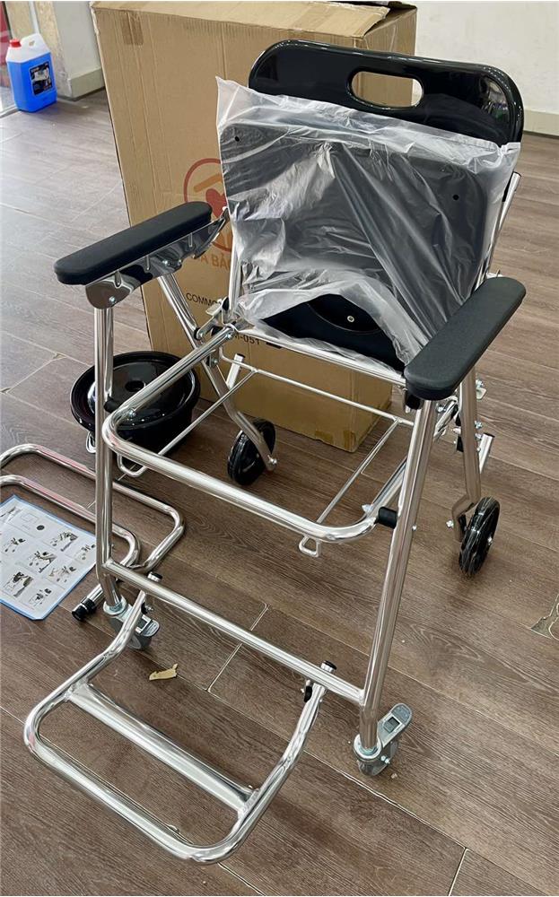 Ghế bô đa năng có thể đẩy người từ giường vào nhà vệ sinh và đi vệ sinh trực tiếp xuống bồn cầu, dùng nước xả rửa mà không bị han gỉ, có thể dùng làm xe lăn khi cần di chuyển, cũng có thể dùng làm ghế ngồi sinh hoạt hàng ngày trong nhà.