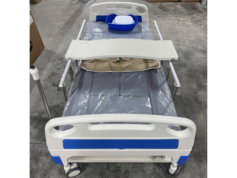 Giường bệnh nhân có bô vệ sinh Nikita NKT-DH04 bao gồm: Cây truyền, bàn ăn, đệm y tế bằng sơ dừa, bô vệ sinh, chậu gội đầu.