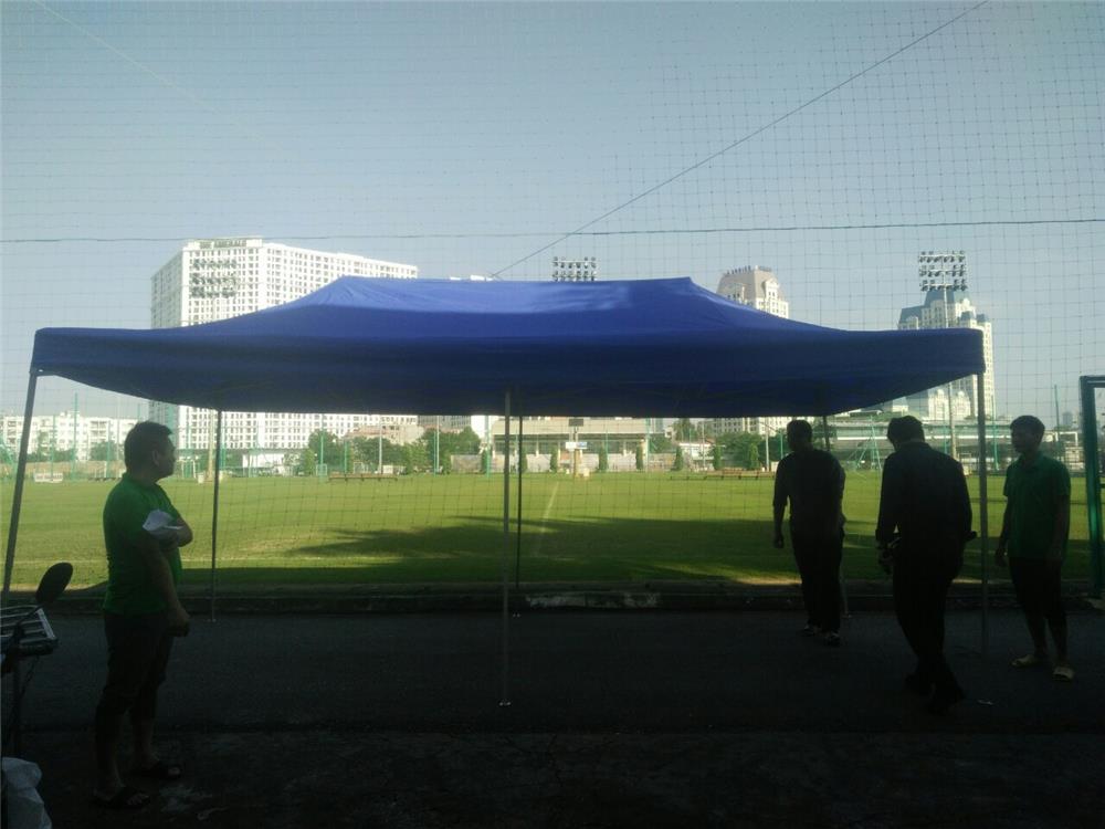 Bốn chân của nhà bạt có thể điều chỉnh độ cao tự do. Khung nhà bạt di động được làm bằng thép ống dày 1mm, sơn tĩnh điện chống han gỉ.