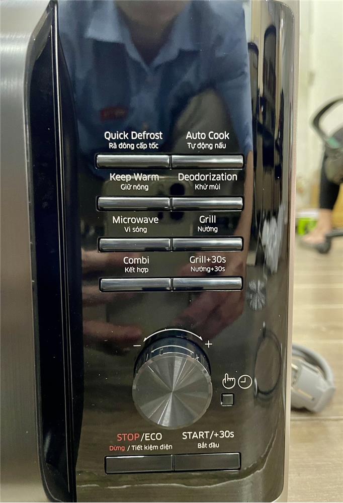 Chiếc lò vi sóng Samsung MG23K3515AS SV này được trang bị bảng điều khiển hiện đại kết hợp giữa nút nhấn điện tử để chọn các chức năng và núm vặn cơ để tăng giảm thời gian. Bảng điều khiển này còn được ghi chú song ngữ Anh - Việt, giúp người dùng dễ dàng sử dụng. Ngoài ra, lò còn được trang bị màn hình hiển thị các chế độ, công suất, thời gian để người dùng thuận tiện quan sát.