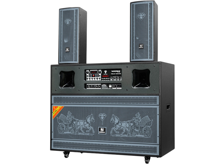 - Hệ thống 3 đường tiếng chuyên nghiệp gồm 2 bass 40cm, 4 loa mid 16cm và 4 treble họng còi, cho âm thanh dày, lan tỏa mạnh.