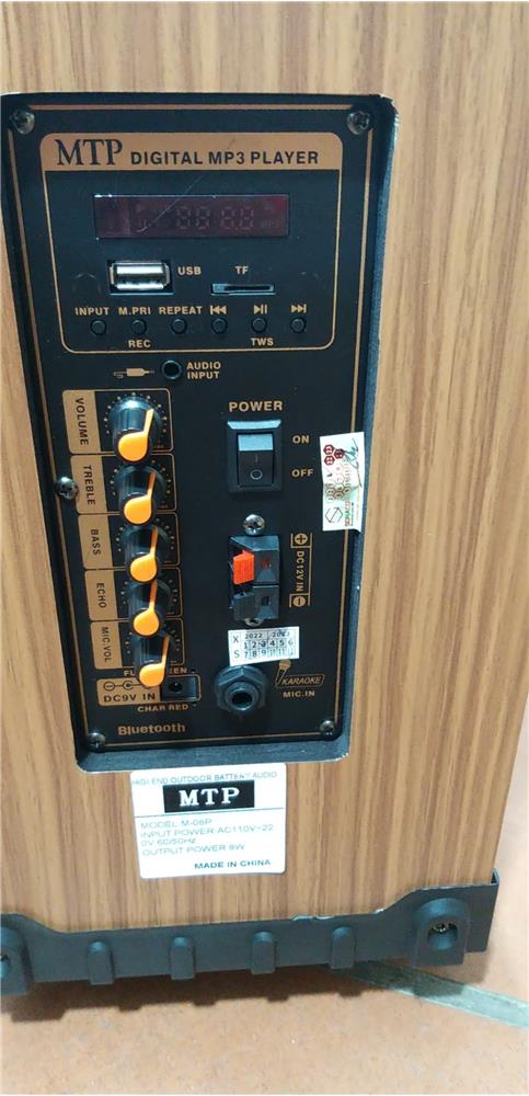 Loa karaoke di động MTP M-08P thiết kế vỏ loa bằng gỗ vân dán đẹp mắt, độ bền cao, cho chất âm trung thực, tự nhiên, hát karaoke nghe hay hơn.
