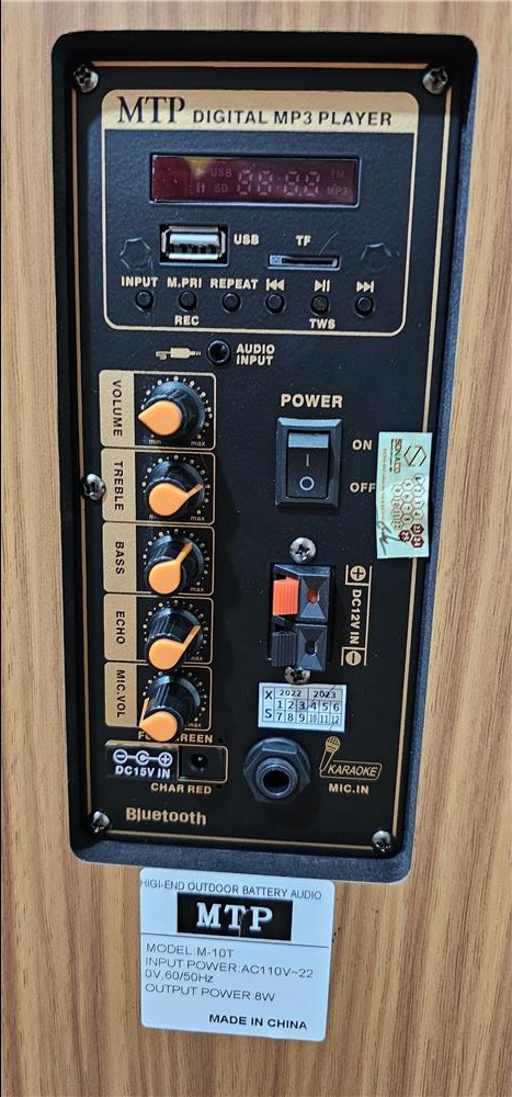 MTP M-10T là mẫu loa nghe nhạc của thương hiệu nổi tiếng Sonaco - Trung Quốc, hàng chuẩn chính hãng, đảm bảo chất lượng. Loa kéo thiết kế màu đen phối vân gỗ nhìn rất sang trọng, tinh tế.