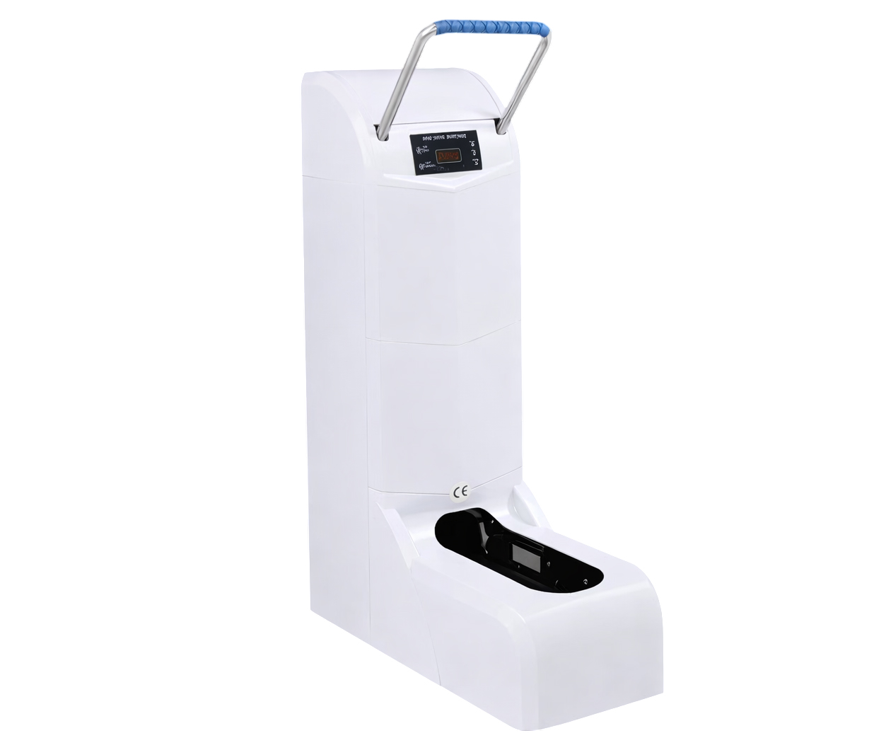 SK-CM-WH sở hữu thiết kế dạng đứng nhỏ gọn với kích thước 63 x 31 x 75 cm và trọng lượng khoảng 19kg, phù hợp đặt tại cửa ra vào hoặc hành lang của các khu vực cần kiểm soát vệ sinh. Máy được trang bị tay cầm phía trên giúp người dùng giữ thăng bằng khi sử dụng, đặc biệt thuận tiện cho người lớn tuổi hoặc trẻ em.
