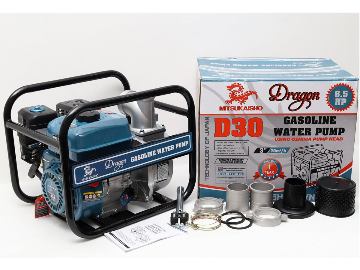 Máy bơm nước Dragon D30 không chỉ hỗ trợ hiệu quả trong việc bơm nước tưới tiêu mà còn ứng dụng linh hoạt trong các công trình xây dựng và xử lý nước thải. Với thiết kế chắc chắn, công suất mạnh mẽ, đây là lựa chọn phù hợp cho những ai đang tìm kiếm một chiếc máy bơm bền bỉ và tiết kiệm nhiên liệu.