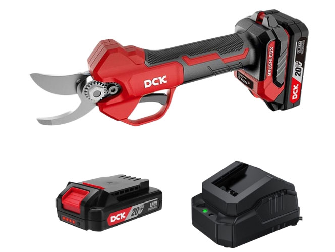 Máy cắt cành DCK được trang bị pin Li-ion 20V dung lượng 2.0Ah, cung cấp hiệu suất ổn định, thời gian sử dụng dài. Đi kèm máy là 2 viên pin giúp thay thế linh hoạt, đảm bảo quá trình cắt tỉa diễn ra liên tục mà không cần chờ sạc lại.