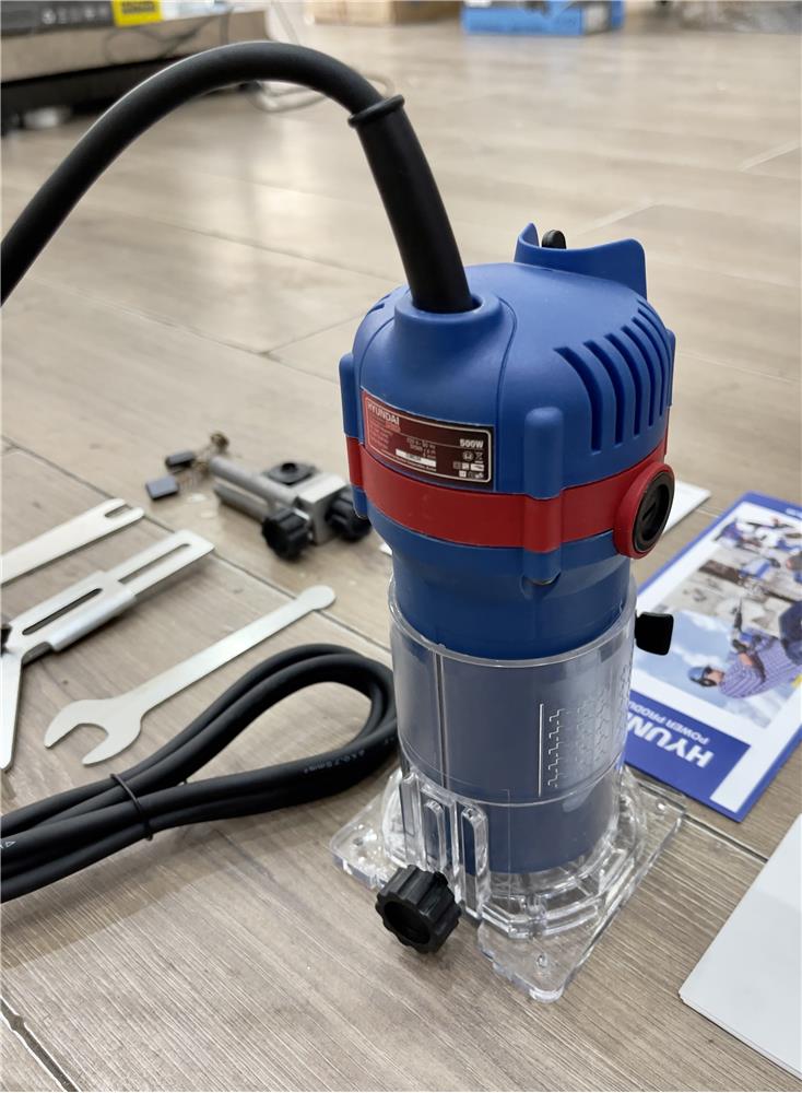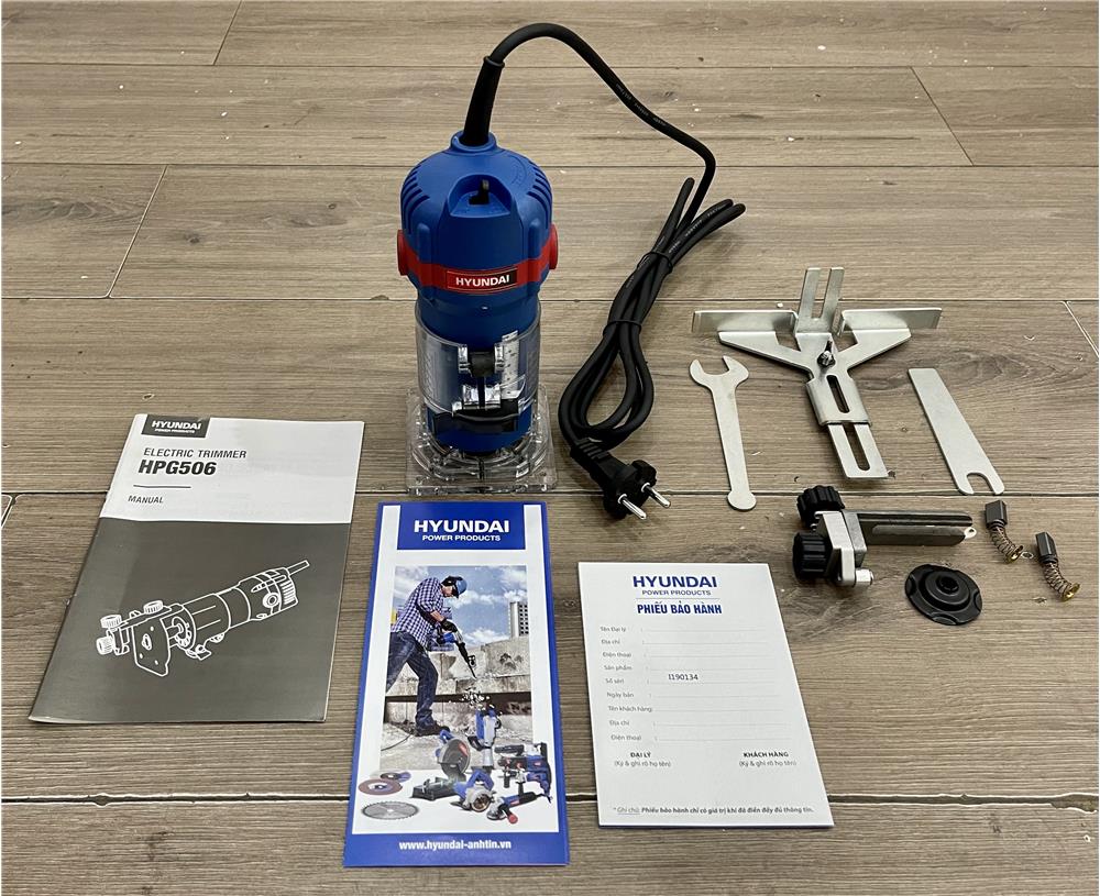 Hyundai HPG506 là máy phay gỗ cầm tay nhỏ gọn, trọng lượng máy chỉ nặng 1.8kg cầm thao tác nhẹ nhàng, không tốn sức. Trọn bộ sản phẩm như hình ảnh bên dưới: