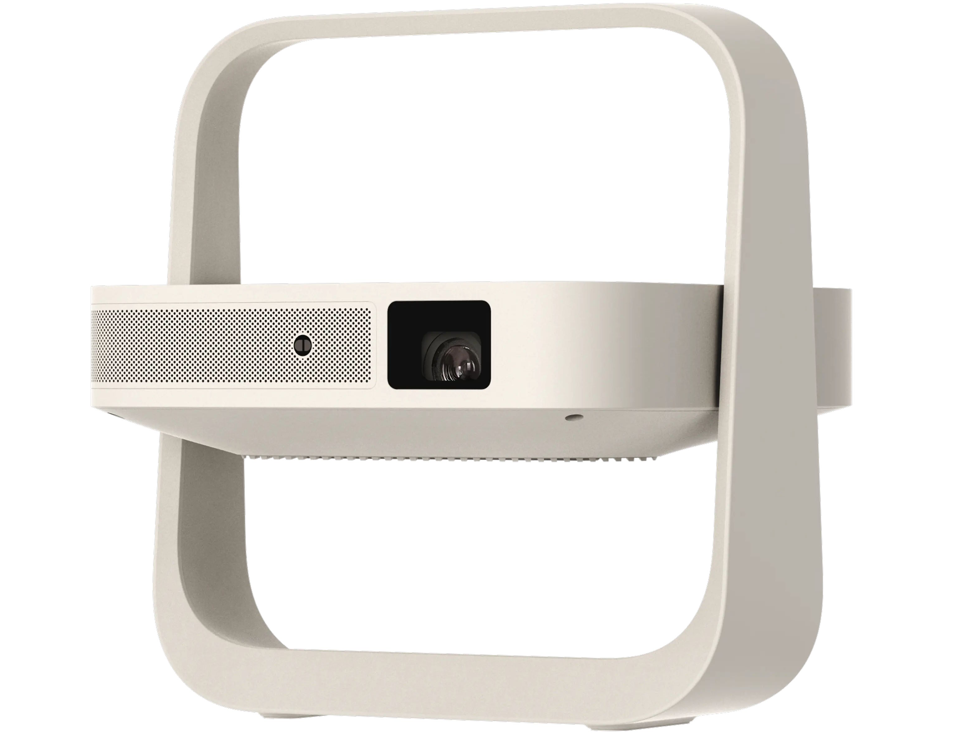 Điểm nổi bật của Elfin Flip Plus là chân đế lật tích hợp có thể xoay đến 150°, cho phép chiếu lên tường, trần nhà hoặc các vị trí khác một cách linh hoạt mà không cần phụ kiện hỗ trợ. Máy còn được trang bị nắp bảo vệ ống kính, giúp hạn chế trầy xước và bụi bẩn khi di chuyển hoặc cất giữ.
