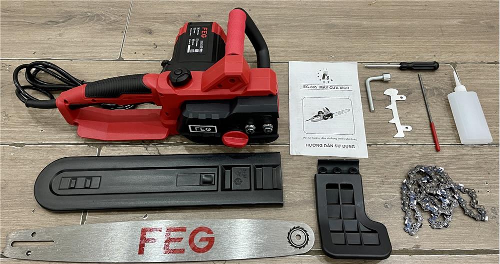 Với các ưu điểm về thiết kế, tính năng cũng như độ bền, máy cưa xích FEG EG-885 sẽ giúp bạn thực hiện các công việc cắt, xẻ các loại gỗ nhanh chóng. Sản phẩm là lựa chọn hoàn hảo cho những ai cần một công cụ mạnh mẽ, bền bỉ và tiện dụng. Nếu có nhu cầu mua sắm, bạn đừng bỏ qua model máy cưa xích này nhé!