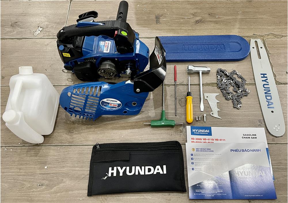 Hyundai HD 3000 hay Hyundai HD-3000 là dòng máy cưa xích chạy xăng mini của thương hiệu Hyundai nổi tiếng đến từ Hàn Quốc. Máy được trang bị động cơ 2 thì với công suất hoạt động 750W, giúp bạn cưa gỗ và cưa cành cây một cách nhanh chóng, hiệu quả. Đây là một dụng cụ thông dụng trong công nghiệp và nông nghiệp để thực hiện xẻ gỗ, xẻ cây, phát quang vườn rẫy...