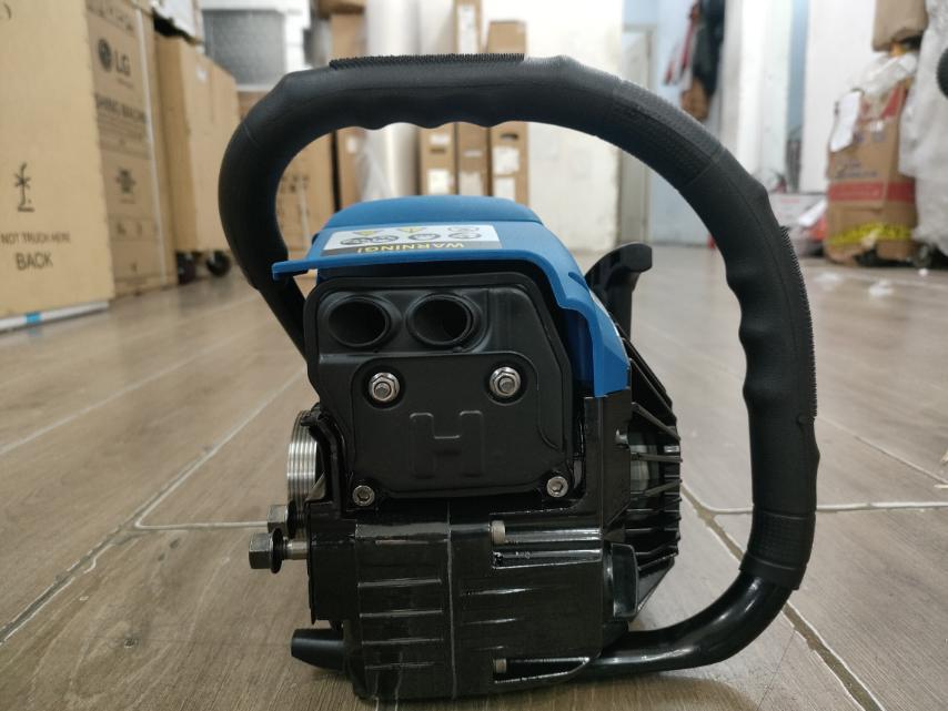 - Máy cưa xích trang bị động cơ 2 thì bền bỉ, dung tích xy lanh là 52cc.