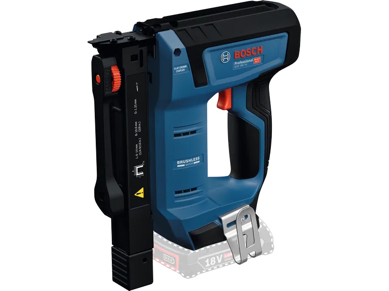 Máy bắn ghim sử dụng động cơ không chổi than 18V của Bosch nổi tiếng với hiệu suất ổn định, bền bỉ và tiết kiệm năng lượng. Máy bắn ghim có khả năng dập ghim nhanh, đều, giúp rút ngắn thời gian thi công đáng kể, đặc biệt trong các công việc liên quan đến lớp cách nhiệt, vật liệu phủ hoặc vải.