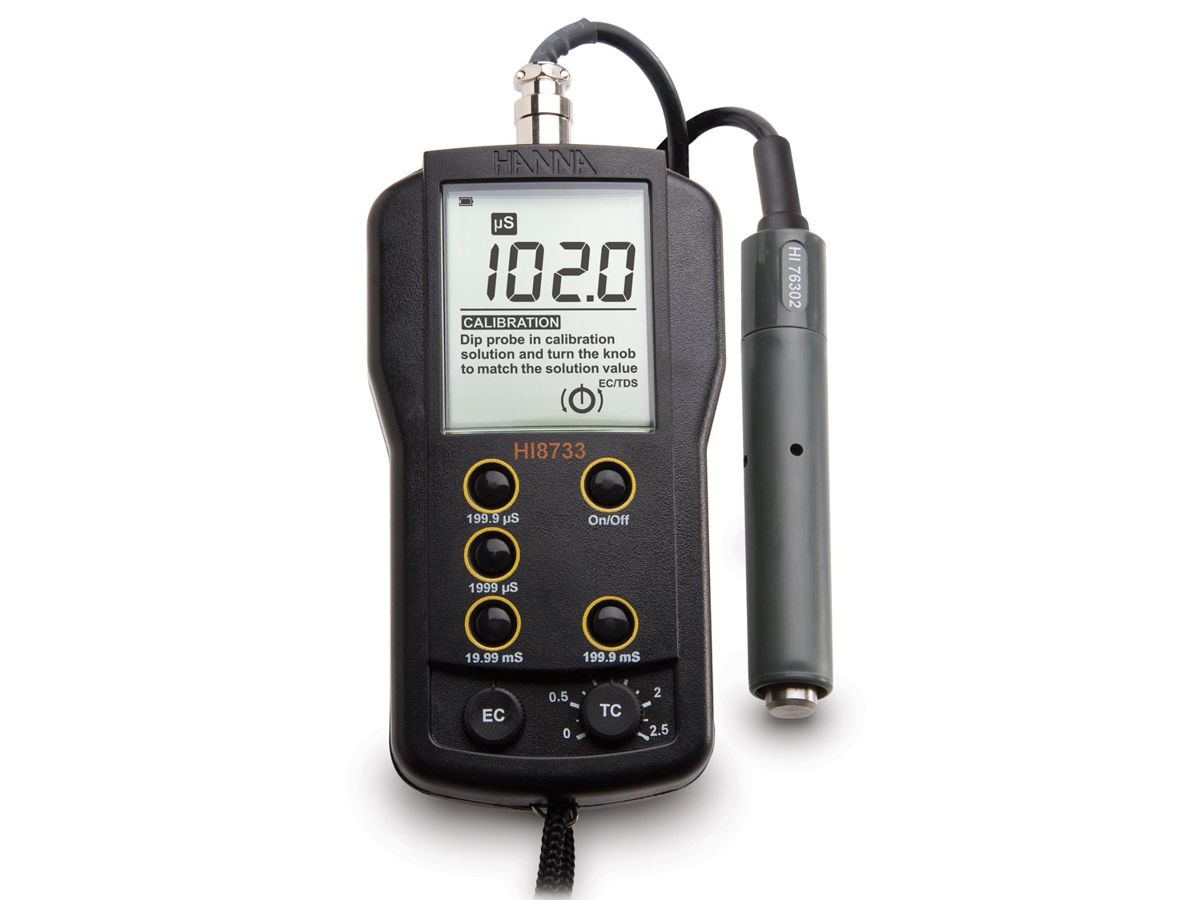 Hanna HI8733 cung cấp bốn thang đo với độ phân giải cao từ 0.0 μS/cm đến 199.9 mS/cm, phù hợp với nhiều môi trường và ứng dụng khác nhau.