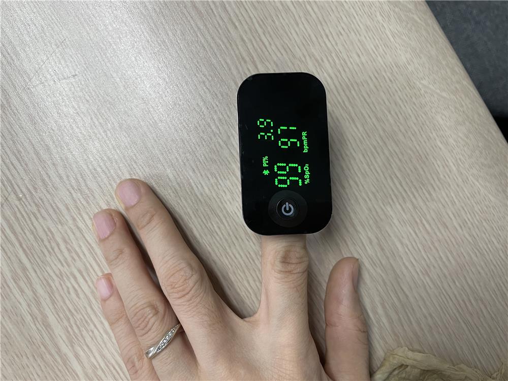 Máy sẽ kẹp vào ngón tay để đo SPO2